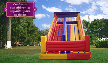 También contamos con equipo y mobiliario infantil para tus eventos. Salas Lounge Infantil, Inflables para niños y niñas, y mucho más. ¡Si no lo ves en catálogo llámanos y pregunta!